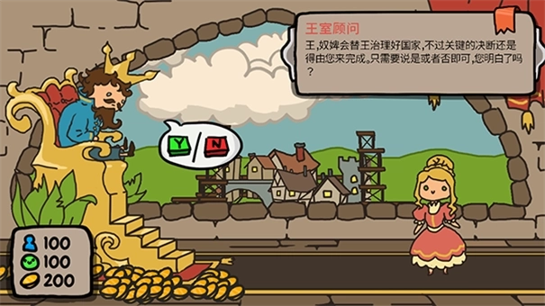 1、整场游戏你都只要在王座上选择是或否就可以了。
