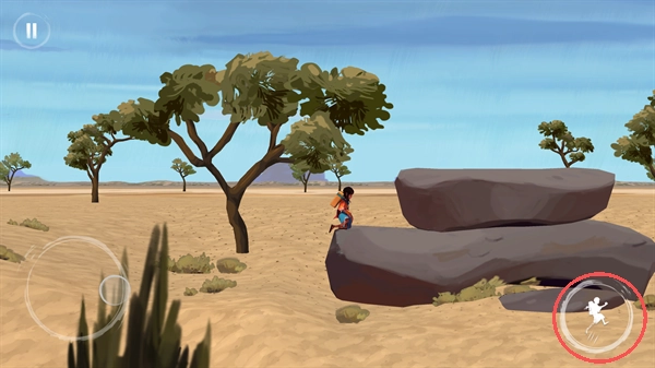 1.进入游戏后经过一段剧情后,拖住左下角的虚拟摇杆操控角色左右移动