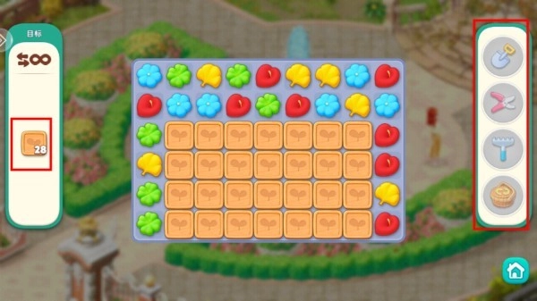 1、在三消关卡中,匹配相同的花朵植物即可将其消除并收集。