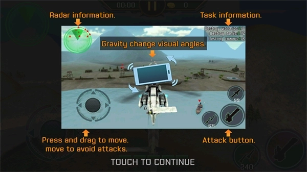 2、游戏的操作很简单,靠陀螺仪控制飞机的驾驶。
