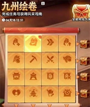 其三为风采商店,大家可消耗风采币兑换限定外观、神兵养成材料、坐骑培养资源等各类道具。2、九州绘卷对传统的五日任务机制进行了调整,使其转变为可随时完成的任务形式,全部完成后可获取640个司南。16个格子分别对应着消耗元宝、清缴流寇、采集资源等日常任务。建议优先完成那些能够形成横、竖或对角线连线的任务,以便快速解锁连线宝箱。每天应先查看任务布局,规划好当日的行动安排,避免出现只差一格却无法连线的遗憾情况。