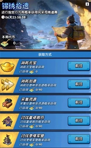 5、零氪玩家的核心目标是集齐所有免费司南,需重点参与锦绣拾遗活动,通过挑战流寇、消耗元宝额外获取司南,专注于点亮九州绘卷的全部内容,借助终极大奖来补充抽奖次数。可以通过购买“乾坤寻将”的勺子消耗元宝,以此获得风采司南,建议以5个勺子为一组进行购买,这样能提升获取风采司南的概率。烽火台任务不建议一键领取,最好逐个单独领取。