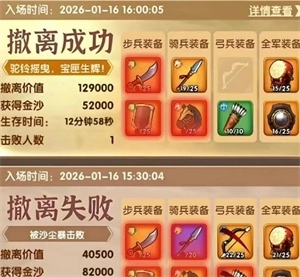 7、该模式包含两种代币,分别是大漠金沙与大漠古币。大漠金沙为每局必获代币,玩家可依据本局排行获取相应数量,其用途是升级军备营;大漠古币则需通过成功撤离后售卖带出的宝物和兵装来获取,主要用于在商店兑换稀有道具,兑换所得可带入下一局战场使用。