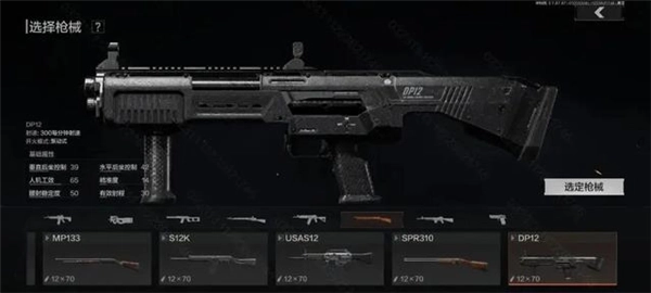 第三把是DP12新型泵动式霰弹枪,它采用无托设计,结构紧凑,配备两根独立枪管供弹,能实现短时间双发射击,可看作SPR310的升级款。但它没有弹匣供弹,需手动单发装填,所以交战时尽量别把子弹打光,最好留几发应对突发状况。