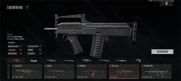 白狼所提供的武器是GROZA突击步枪,该枪采用9×39毫米口径弹药,采用无托设计,参考了成熟的AKS-74U突击步枪,其定位与VSS较为相似。虽然它的射速比不上VSS,但比其他大部分突击步枪要快,而且在控制后坐力方面也比VSS更容易。