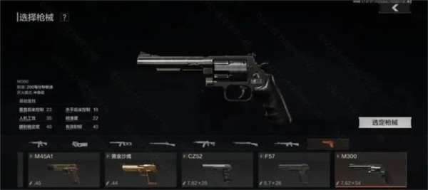 首先新加入的是一把转轮手枪M300,它采用7.62×54毫米大口径弹药。该枪械后坐力不小,不过能够搭配长枪管,还能兼容各类高倍瞄准镜。但弹巢与枪管之间存在较大缝隙,由此引发的气密性问题,让枪机的能量转化效率以及射击精度都受到了限制。