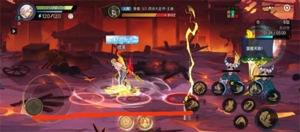 2、雷霆天劫发动时,地面会浮现四个标记,紧接着便会有落雷降下,记得通过上下移动来躲避伤害