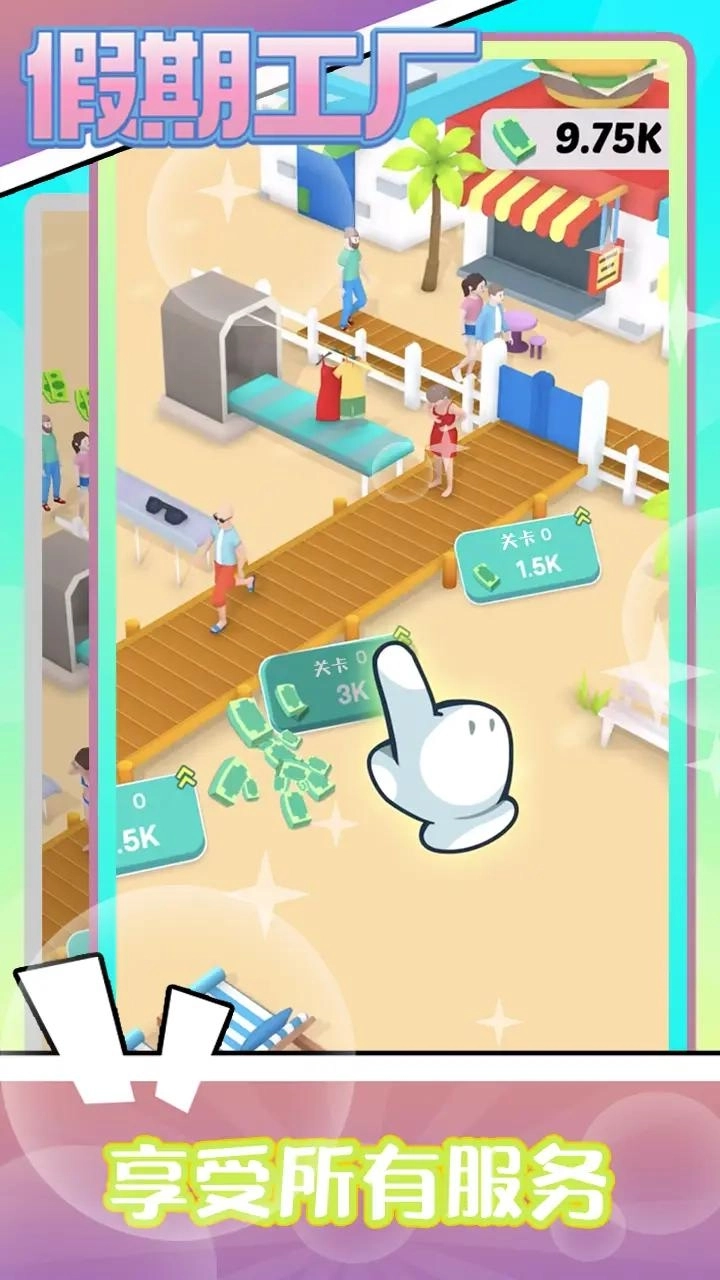 3、在度假工厂游戏里,玩家得建造酒店、餐厅、游泳池、SPA中心这类不同设施,持续提高度假村的级别与服务品质。