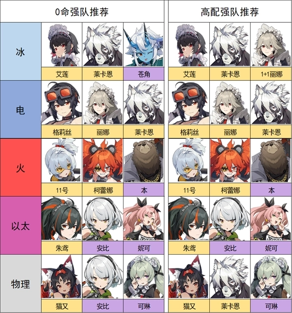 各属性配队