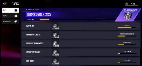 4、而想要获取更多的钱,我们可以通过完成系统派发的任务赚取买车的钱;
