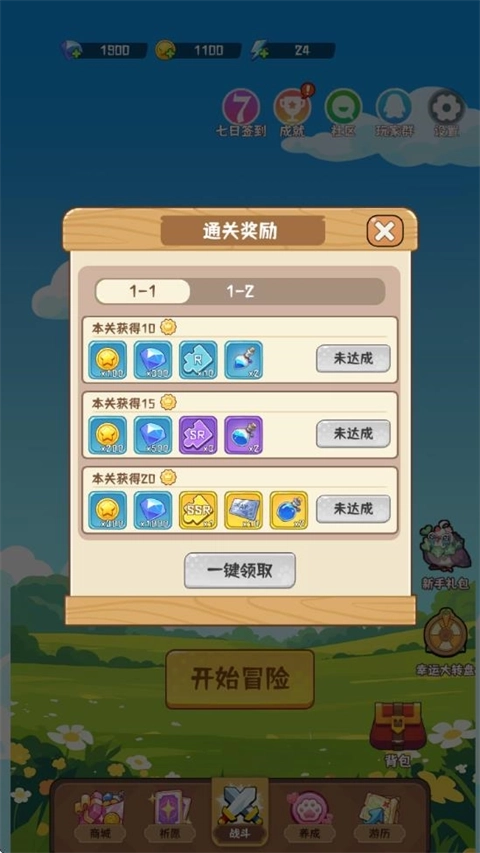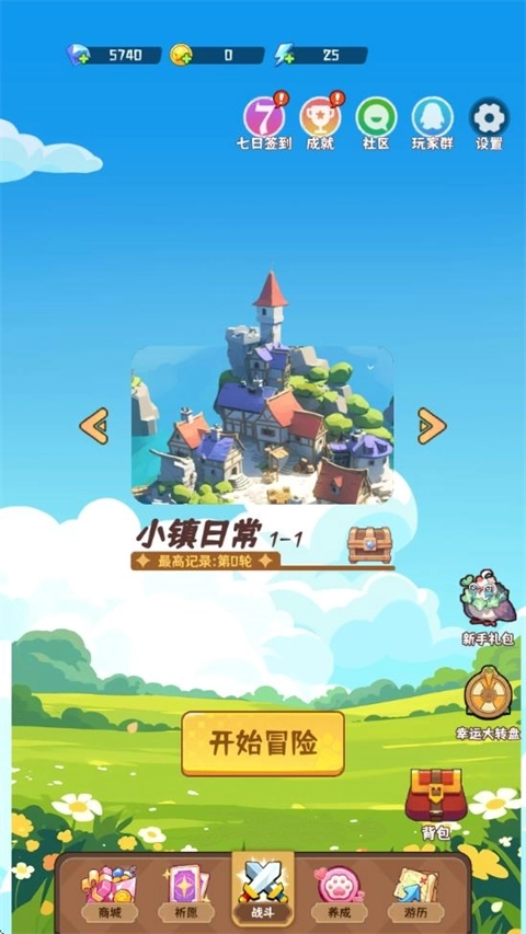 1、进入游戏后点击主界面的开始冒险进行闯关。