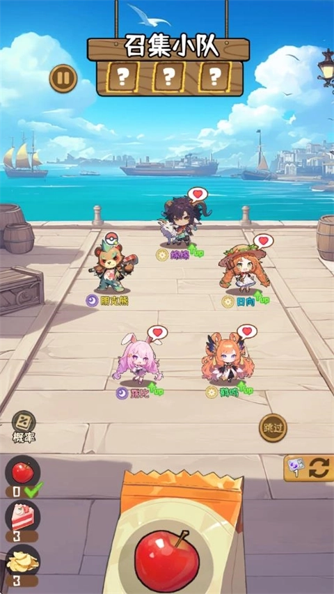 2、进入关卡后,可通过消耗食物来招募队员,不同类型的食物能够招募到的角色各不相同。