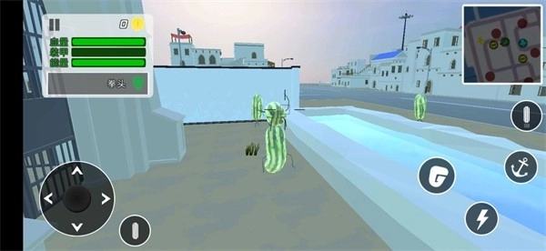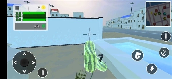 1、在危险的场景中冒险,与大量的西瓜人进行战斗,使用各种不同的武器来完成挑战,与西瓜人进行竞技PK,非常的热血刺激;