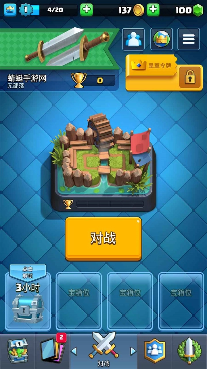 摧毁对方皇家塔赢得皇冠,获取充满惊喜的皇冠宝箱。