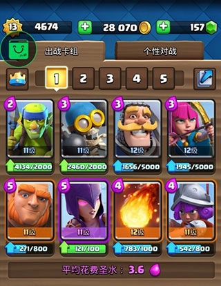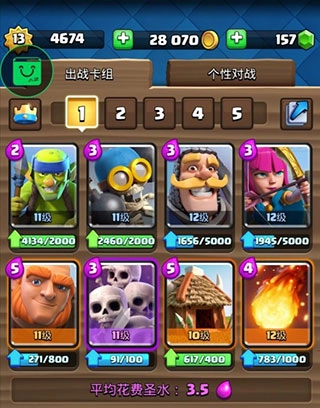 收集皇室战争家族成员以及你熟悉的《部落冲突》中的军队、法术和防御建筑等卡牌,构建并升级你的卡组。