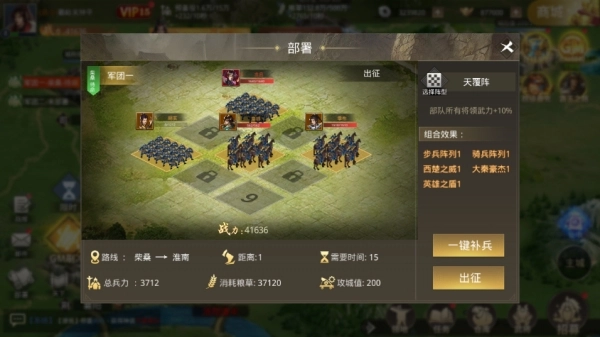 3、已出征为例,补充兵马后点击出征即可;