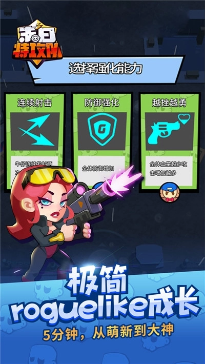 开局就带一条狗,逛街还能捡到队友!赶紧组建你的特攻战队,解锁、收集并培养各式各样的特工队员吧。每个队员都有自己独特的特殊能力,在局内随机选择后还能获得永久技能,搭配不同队员出战,就能应对一波接一波永不停歇的僵尸狂潮挑战啦。
