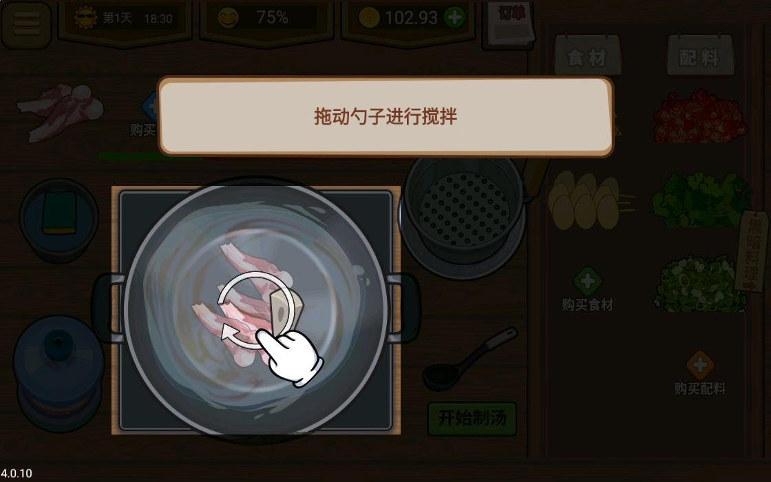 2、玩家的金币会持续积累,积累后能够购买更多食材;而升级摊位则可以提升你的收入。