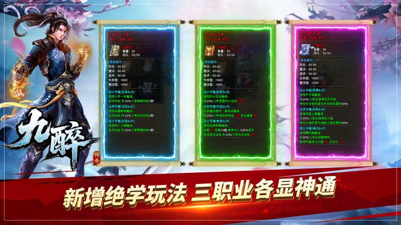 九醉传奇推出185火龙三职业版本,带来超爽范围切割体验,让你感受割草般的畅快战斗!赞助、首充、礼包等福利都能通过打怪获取,每日杀怪还能赢取大量真充卡,红包奖励更是领到手软!新版本新增了全新绝学玩法,同时保留了原汁原味的三职业经典设定,让每个职业都能在战场上各展所长!完成支线任务即可解锁七彩魂骨,其超强属性将助你在玛法大陆的征战中所向披靡!