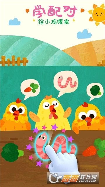 动物农场里的小鸡饿了,你能找出小鸡喜欢的美食喂给它吗?接下来去清理羊毛吧,拿起动物洗澡刷,把绵羊刷干净。帮奶牛赶牛蝇,喂它吃牧草。击退胡蜂,保护蜜蜂!宝宝们,你的农场动物能不能健康成长呢?就看你的咯!(学习配对,锻炼手眼协调能力)