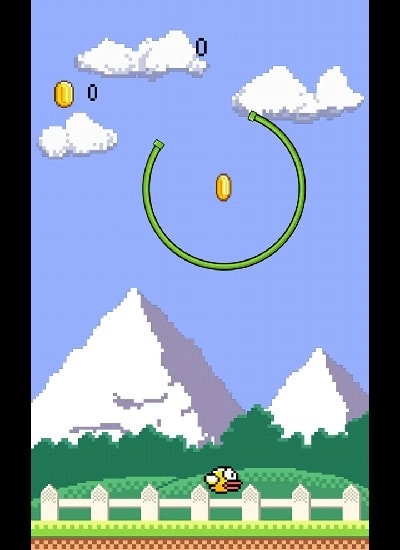 2、基本就是全靠点击屏幕,让小鸟向上飞;
