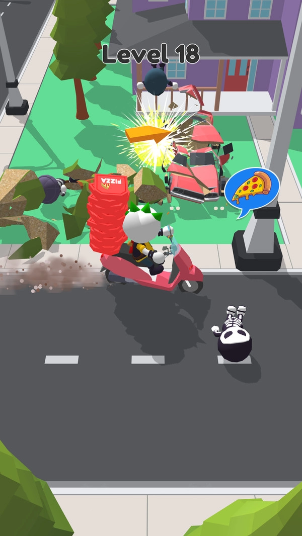 2.精致卡通风格的多样场景里,你将化身送餐员,迎接各类送餐任务的挑战——无论订单看起来多么不可思议,只要客户有需求,就能为他们送去餐食。