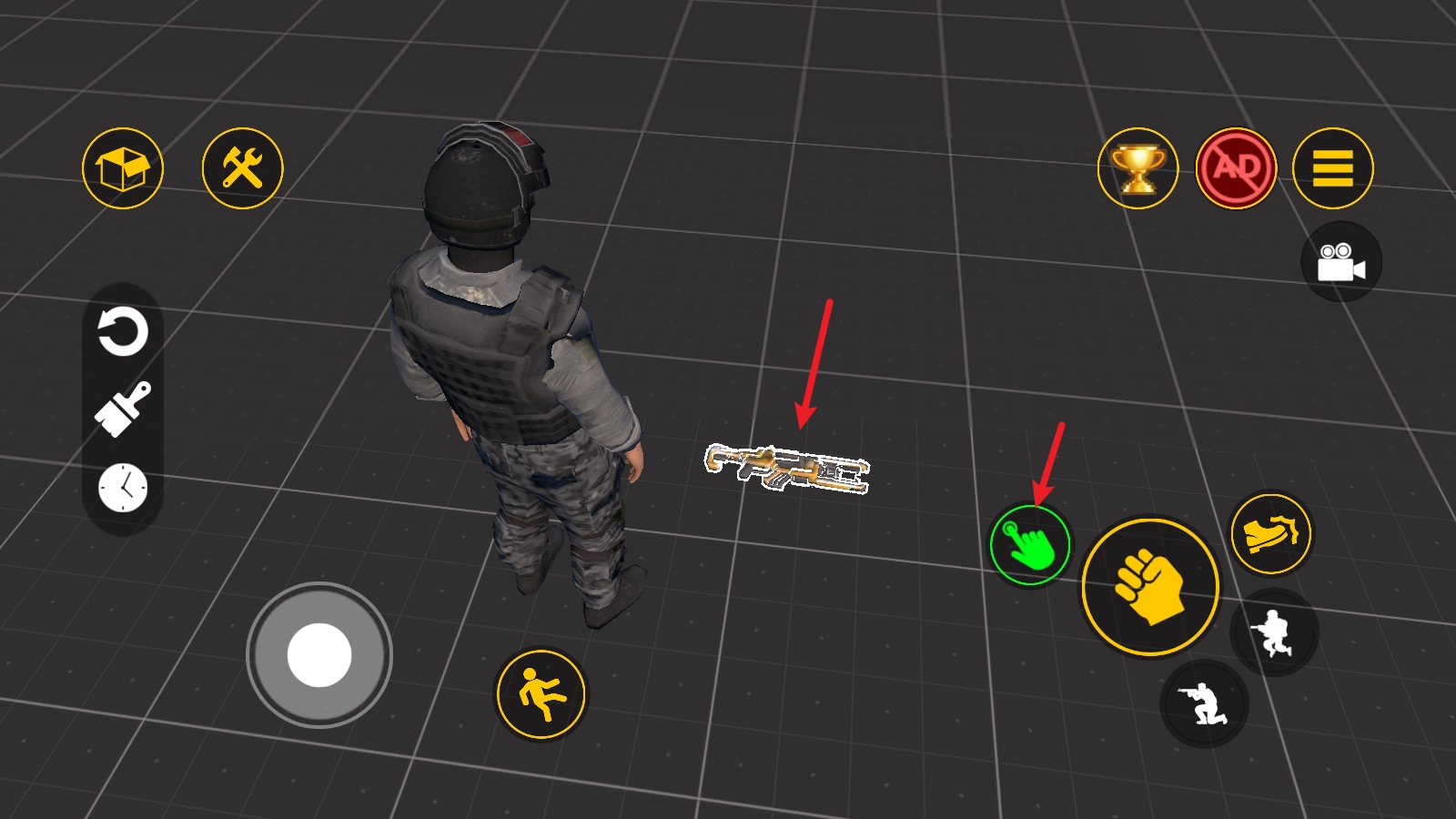 就像这里,当人物移动到枪械附近时,拾取按钮便会亮起,点击该按钮就能完成拾取操作。