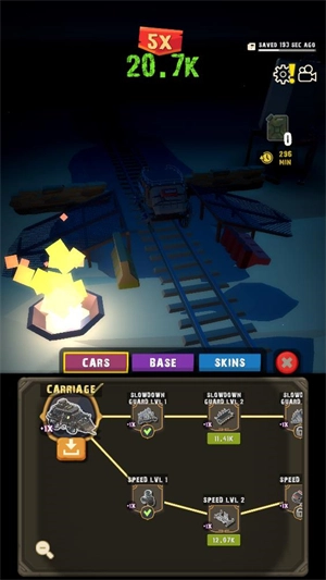 在主界面点击cars可以消耗金币对列车进行升级。