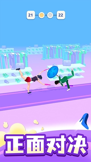 时尚大决斗是一款休闲益智类动作游戏,玩家将扮演时尚博主角色,在时尚精品店等场景中与其他博主对决,抢夺拍摄机会。游戏中,玩家可自由搭配时尚套装,解锁多种奇葩武器道具,通过摆出最佳攻击动作,击败对手,赢得时尚格斗胜利。游戏画面卡通,操作简单易上手,适合女生用来打发时间、发泄压力,体验时尚与格斗的双重乐趣。