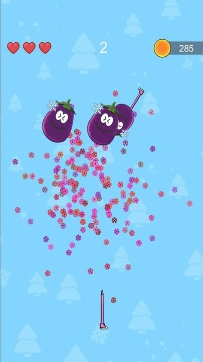 2、用道具射中水果即可通关。