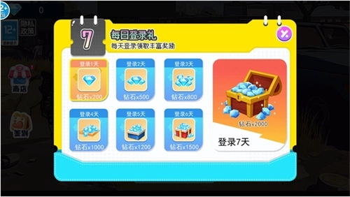 1、进入游戏后,玩家首先会领取到每日奖励,其中包含钻石奖励,这些钻石可用于解锁各类不同的武器。