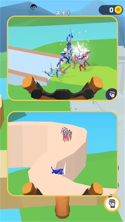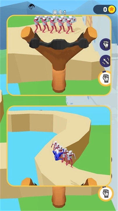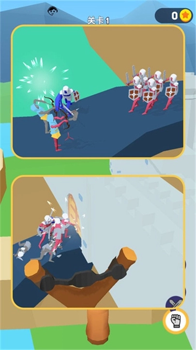 1、玩家需要精准控制弹弓,击败不断来袭的敌人。