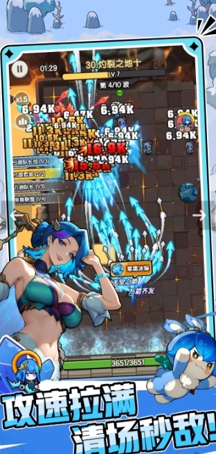 采用极简操作方式,5秒即可上手,战斗流程简化,玩家只需点击屏幕释放技能或开启自动模式,无需复杂操作技巧。新手引导清晰,过关失败会弹出战术提示,即使是游戏小白也能快速通关。