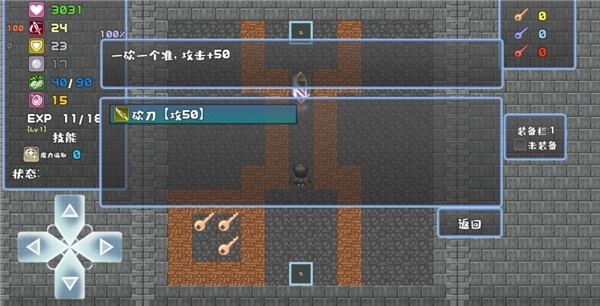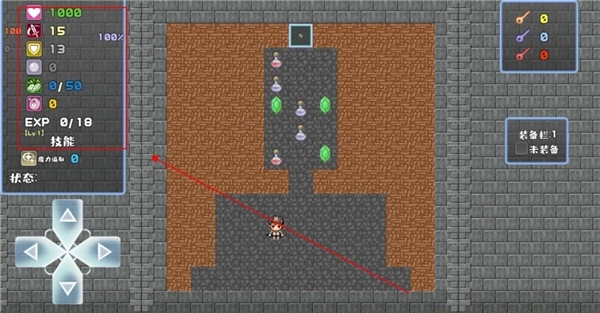 2、左上角的列表依次显示着你的生命值、攻击力、防御力、魔力、经验值等各项属性数值