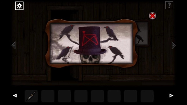 1、首先在场景里,点击床头柜上的四个骷髅头,按照1221的顺序点击后,乌鸦所在的柜子就会打开。在柜子中间能拿到火柴。