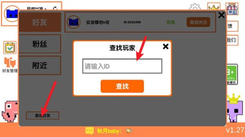 2. 随后找到添加好友的功能选项,在相应位置输入好友的ID来开展搜索。