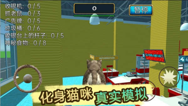 3、猫咪拥有精力值与调皮值双重状态系统:精力影响行动的敏捷程度,耗尽后需要休息来恢复;而调皮值则决定了可触发的恶作剧行为数量。4、有些家具隐匿着特殊的破坏点,需仔细探寻环境中的细节,精准启动隐藏机制,如此一来,不但能引发更大程度的混乱,还可获得珍稀奖励。