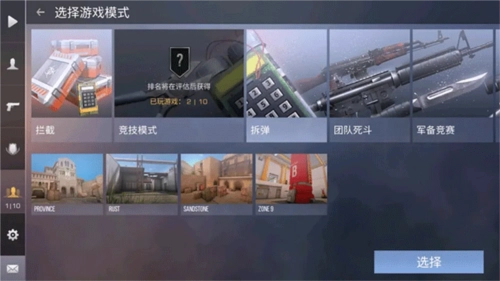 现阶段游戏模式仅有:拦截模式、竞技模式、拆弹模式、团队死斗、军备竞赛以及狙击对决。在此便不详细阐述游戏规则了。