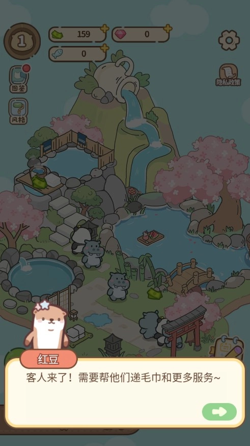 顾客需求任务设定:狐狸、兔子等多种动物顾客各自具备专属故事线,玩家达成它们的需求,便能触发隐藏剧情,进而解锁专属日记。举例来说,当招待大猩猩并满足它的全部要求后,玩家就能够获取“超大浴池”这一奖励。