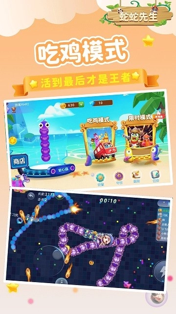 蛇蛇先生中文版为你呈上别具一格的贪吃蛇竞技之旅,巧妙地把经典玩法和多人对战相融合。游戏运用横版对战形式,能够让多人实现线上实时竞技。玩家通过虚拟摇杆来控制蛇蛇的移动,于有限的战场内展开策略性的周旋。这里还有丰富多样的皮肤系统,无论是可爱的卡通风格,还是酷炫的机甲风格,都一应俱全。而且特殊道具会随机刷新,能瞬间改变战局,为玩家创造逆袭的契机。
