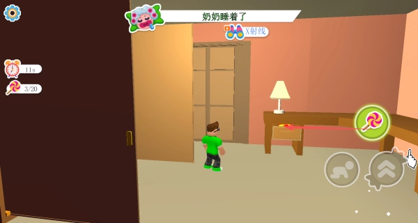 1、进入游戏,开启偷糖果挑战,于场景中收集尽量多的糖果。