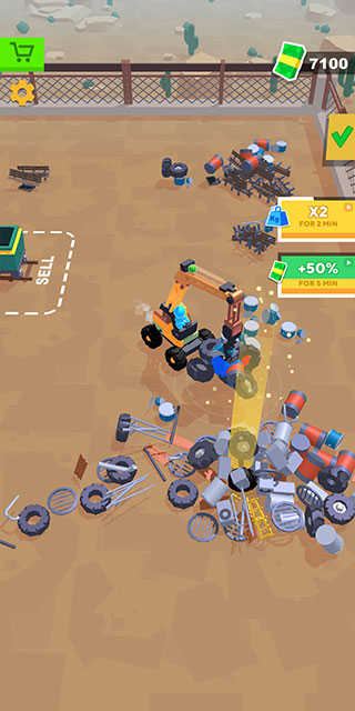 1、借助垃圾处理工具达成任务,运用磁铁与垃圾清运车清理后方全部垃圾,进而获取收入。