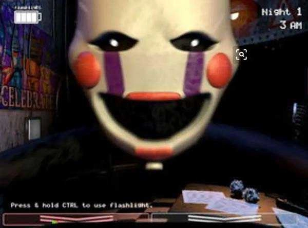 从第六夜起开始出现,存在两种攻击方式。要是发现他出现在左侧(即 BB 的位置),要马上戴上头套,戴好后立刻离开,这里的反应时间比应对老玩具的反应时间要短。要是在正门用手电筒照到他的大脸,处理方式同上。要是反应慢了,他就会跳杀(找相关图片实在太难了)