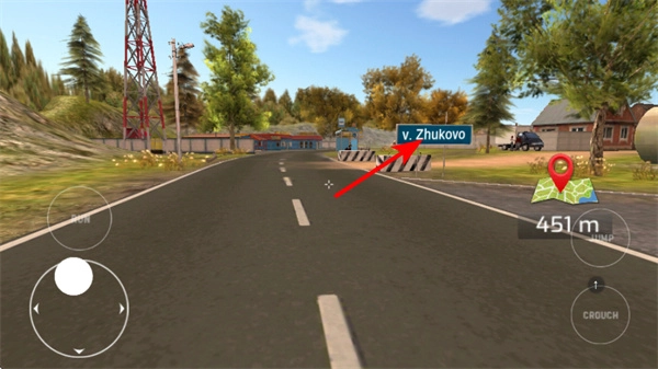 1在游戏里,留意道路旁边的地名标识,同时依据地图给出的451m距离提示,确定行进方向的目标地点,这一点至关重要。