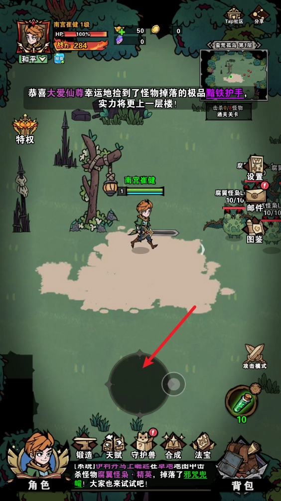 消灭怪物后会掉落装备、材料等物品,靠近即可拾取。