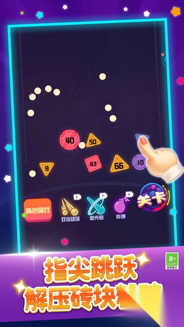 当满足特定条件时,即可解锁全新关卡。每一关的布局设计与方块组合都各具特色,能够充分考验你的弹射策略思维。