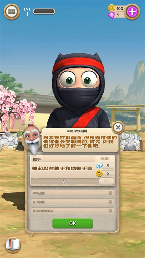 跳弹床与打沙袋都是获取金币和经验的不错方式,拖动它们让小忍者能够跳到或打到就行啦。结束之后会掉落奖励的袋子,这时小忍者会把手举起来,意思是:give me five!和他击掌后那可爱的模样实在是让人觉得很怜爱呢!