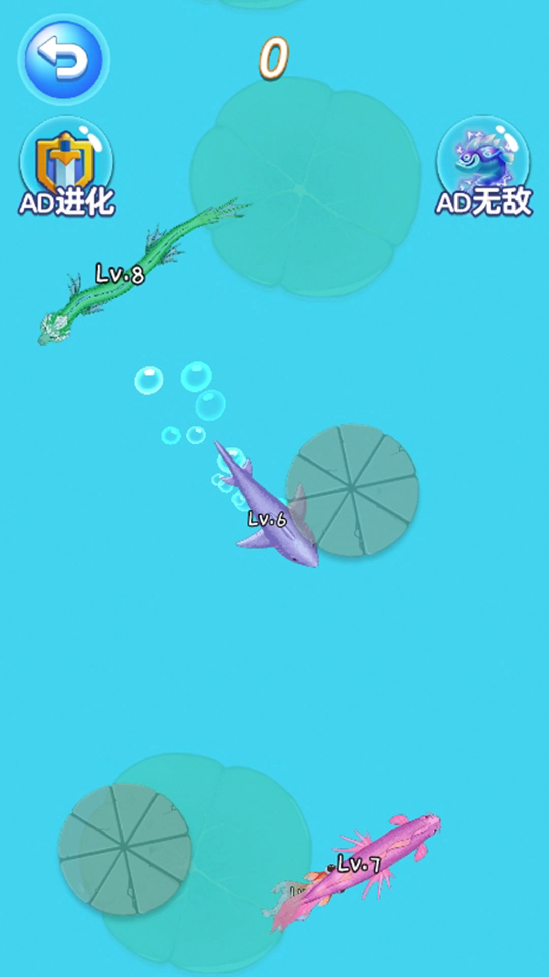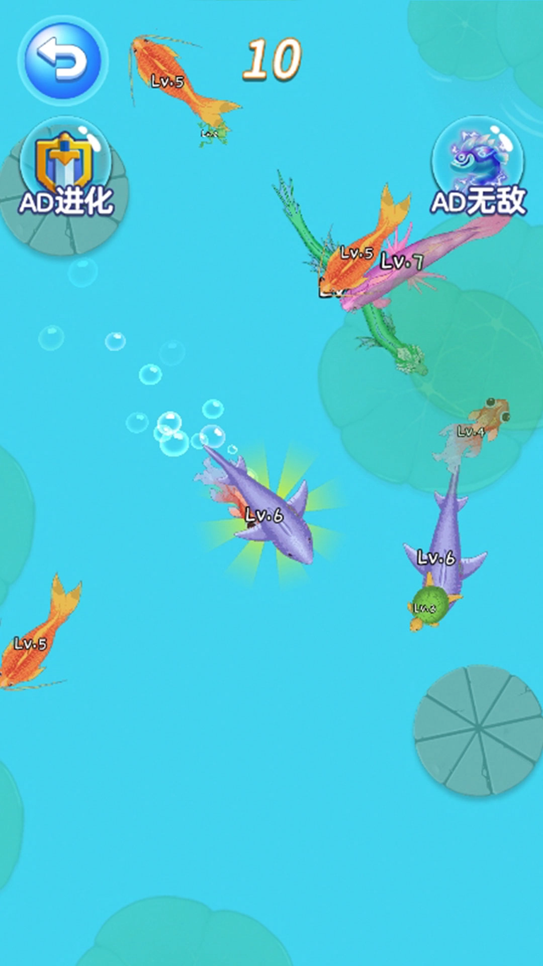 水域里生活着青蛙、乌龟、鲤鱼等各种各样的水生生物,它们有着各不相同的外形和特性,为生物的吞噬与进化提供了丰富的选择空间。