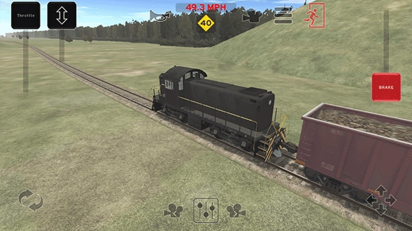 右上角的红色拉杆能让火车启动,左上方的拉杆可调节速度、实现倒车或切换驾驶视角,红色人形图标用于下车操作。
