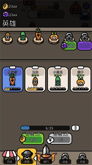 不同的水果蔬菜英雄等你去召唤来战斗,丰富的英雄角色可以自由选择来上阵战斗。